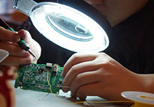 Специалист сервис центра исполняет работу: заменяет испорченную деталь исправной оригинальной комплектующей